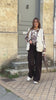 Pantalon en velours côtelé marron stretch coupe large wide leg ceinture tressée