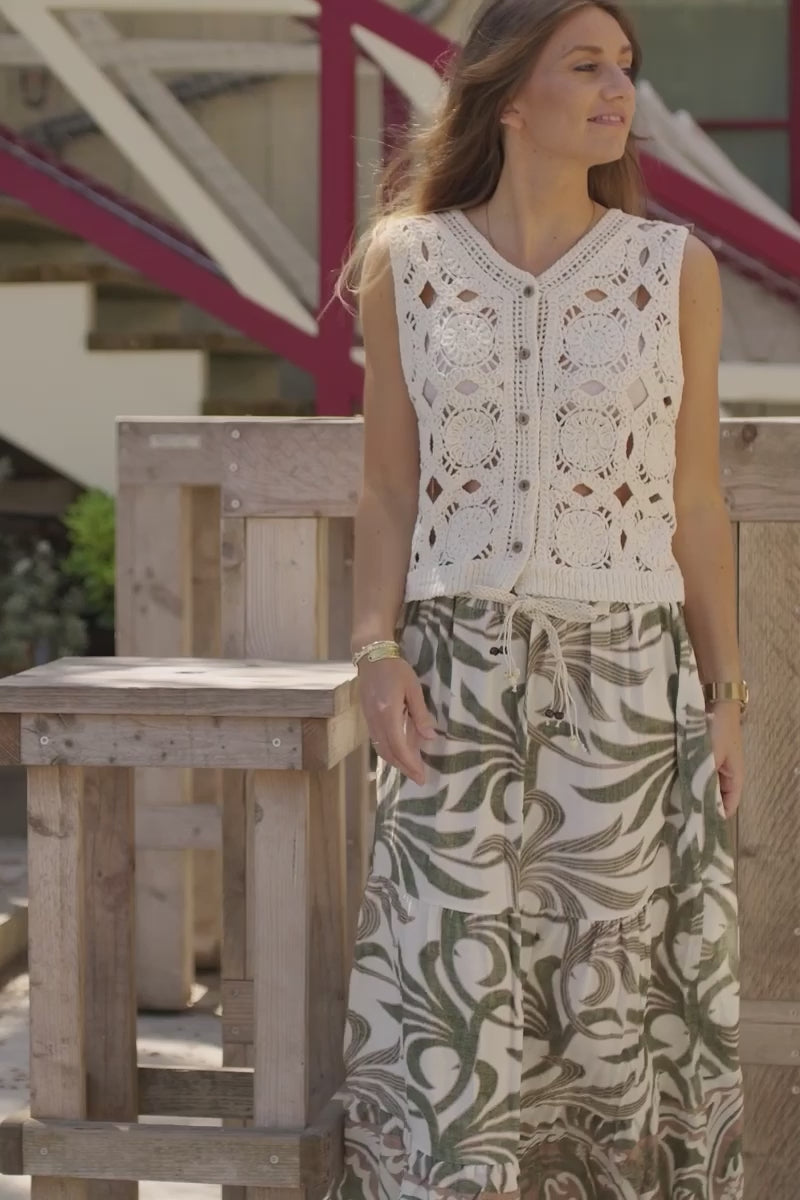 Cream Crochet Medallion V-Neck Vest