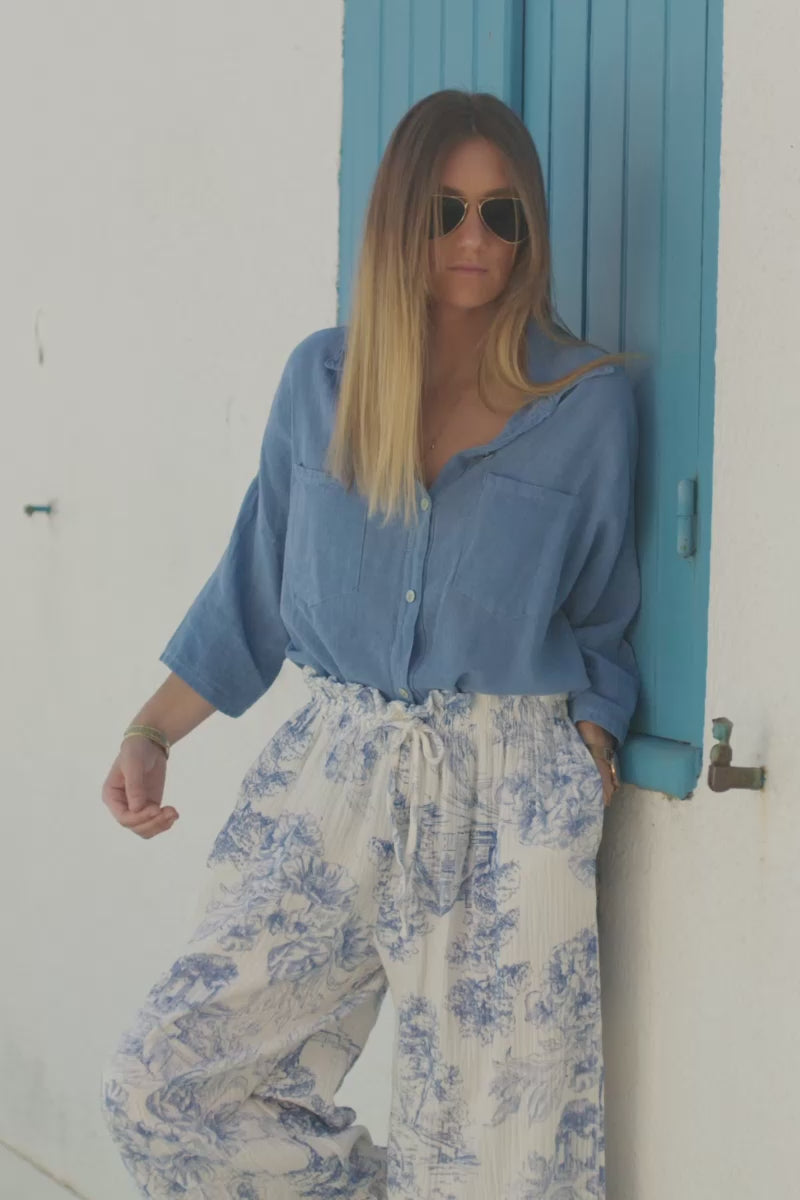 Royal blue soft cotton blouse with 3/4 sleeves and large pockets