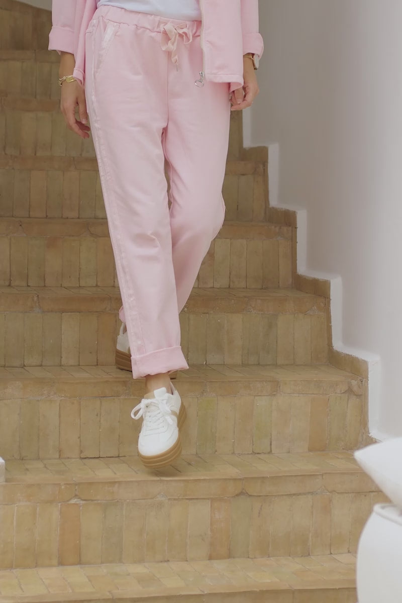 Baby Pink Satin Trim Ponte Knit Pull-On Pants