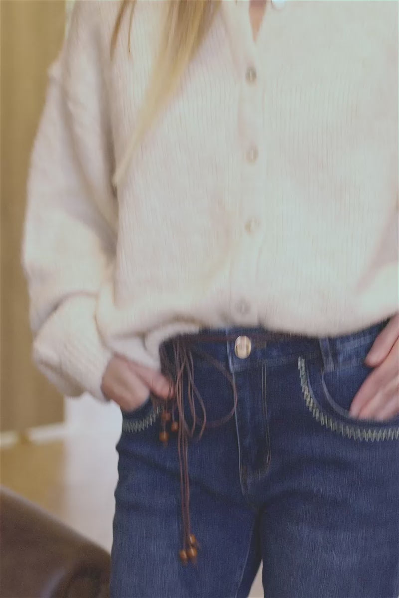 Super soft round neck cardigan Beige with mother of pearl buttons
