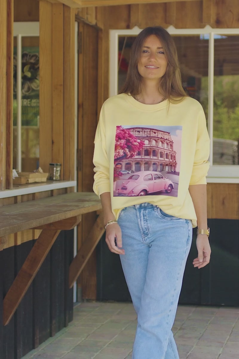 Yellow Roman Holiday Screen Print Sweater