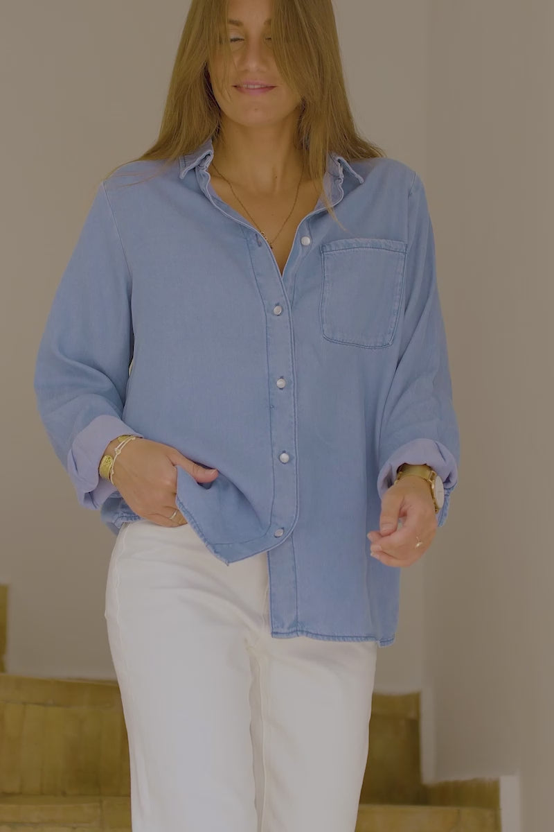 Camisa fluida de lyocell con efecto denim y botones de perla