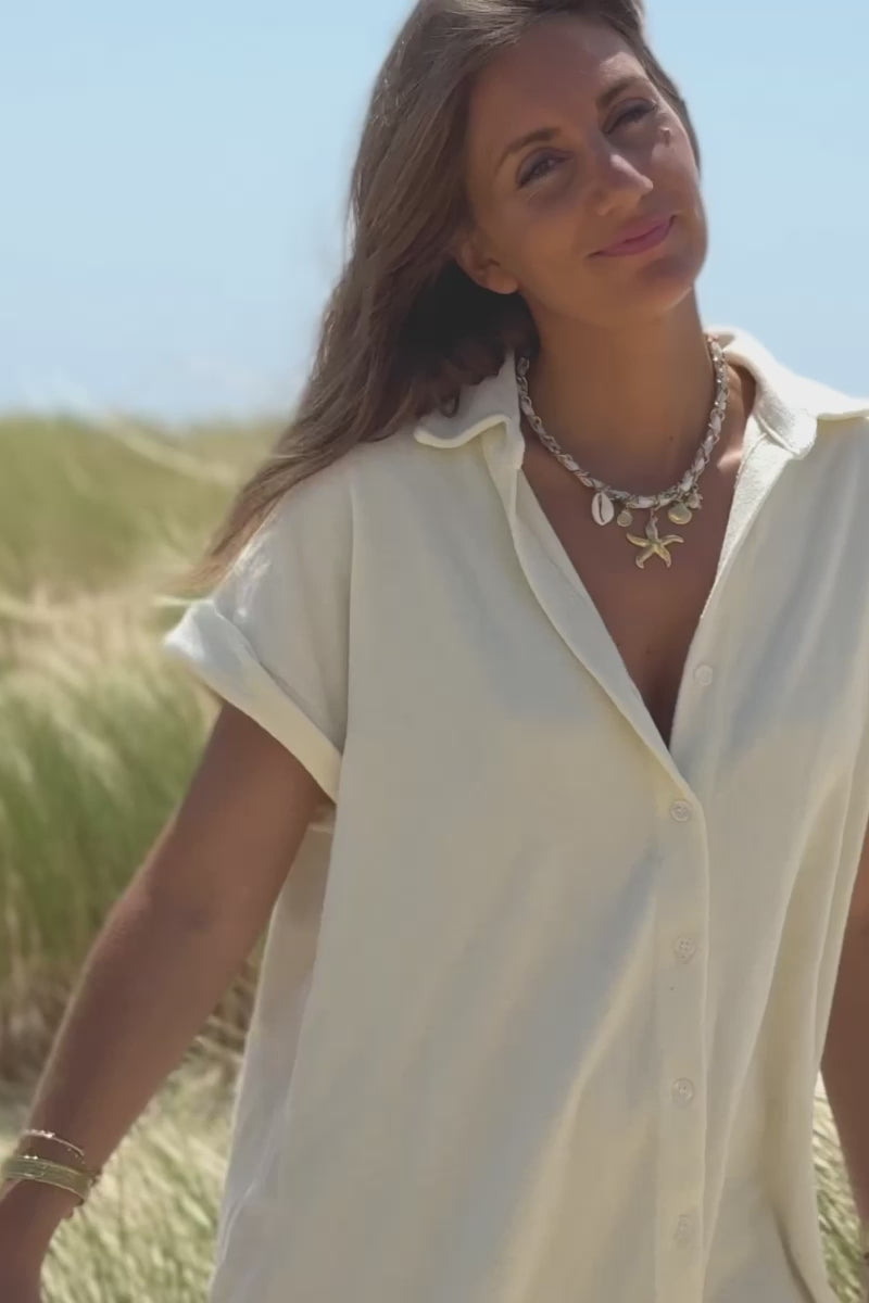 - Su cuello camisero y cierre de botones le dan un estilo casual y fresco, ideal para salir a la playa o piscina.