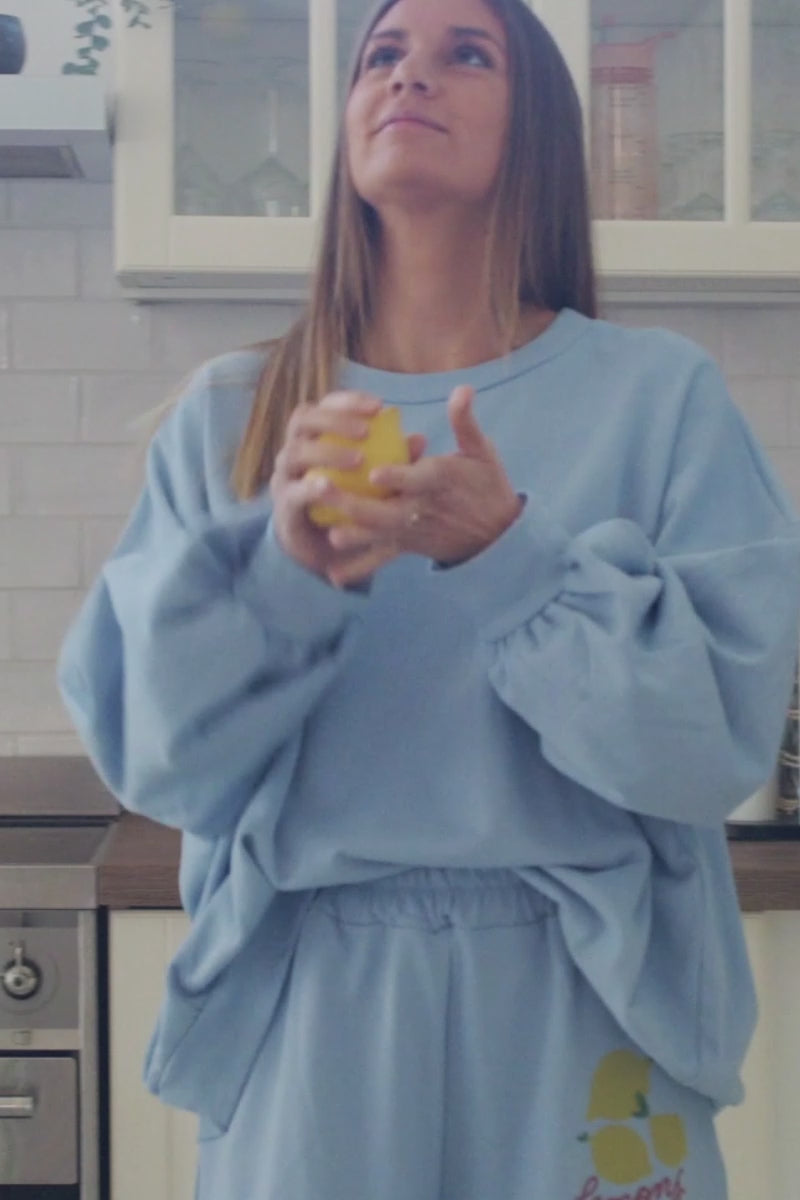 Pantalón de jogging azul cielo de corte amplio y cómodo y cintura elástica con estampado de limones y limones lavados.