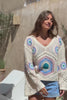 Pull en crochet broderie rosace bleu rose et vert