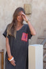 – Cette robe longue confort gris délavé en coton stretch est l'équilibre parfait entre décontraction urbaine et esprit bohème.