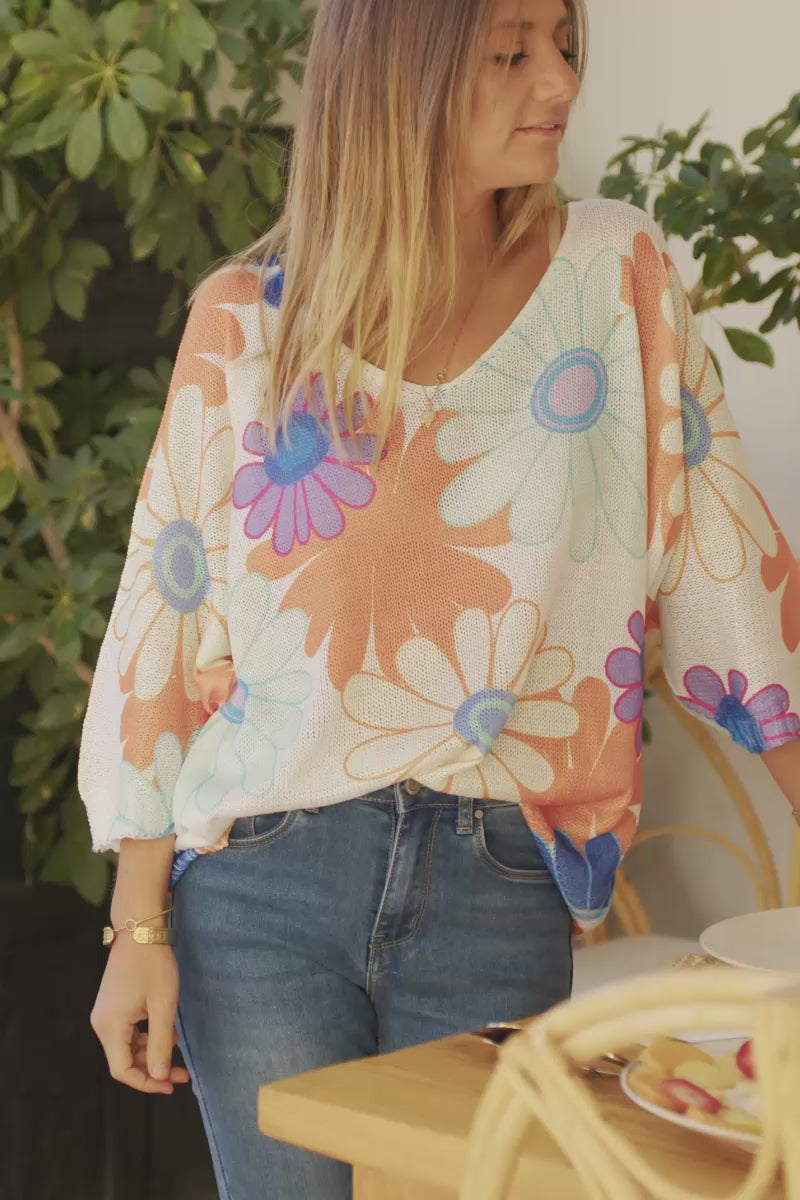 - Ce top en maille coton avec des grandes marguerites colorés offre un style unique et original !
