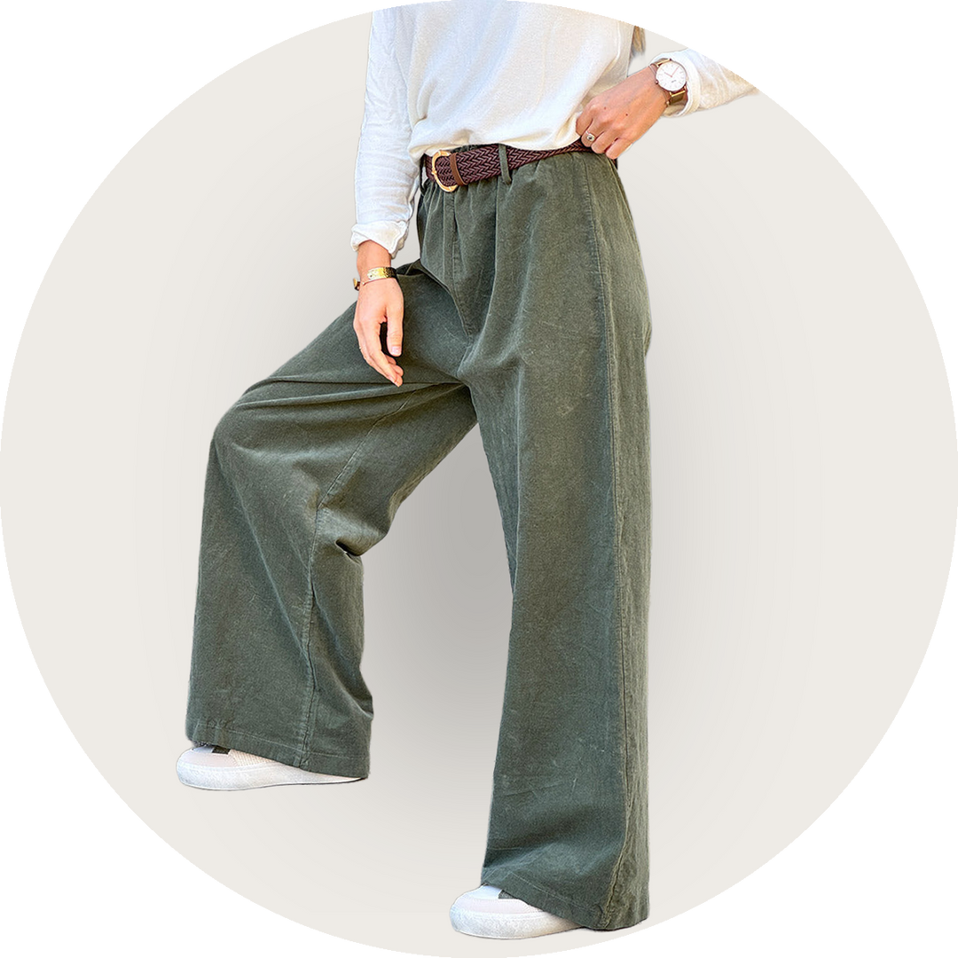 Jupe longue kaki en velours côtelé fin ceinture élastiqueJupe longue kaki en velours côtelé fin ceinture élastique