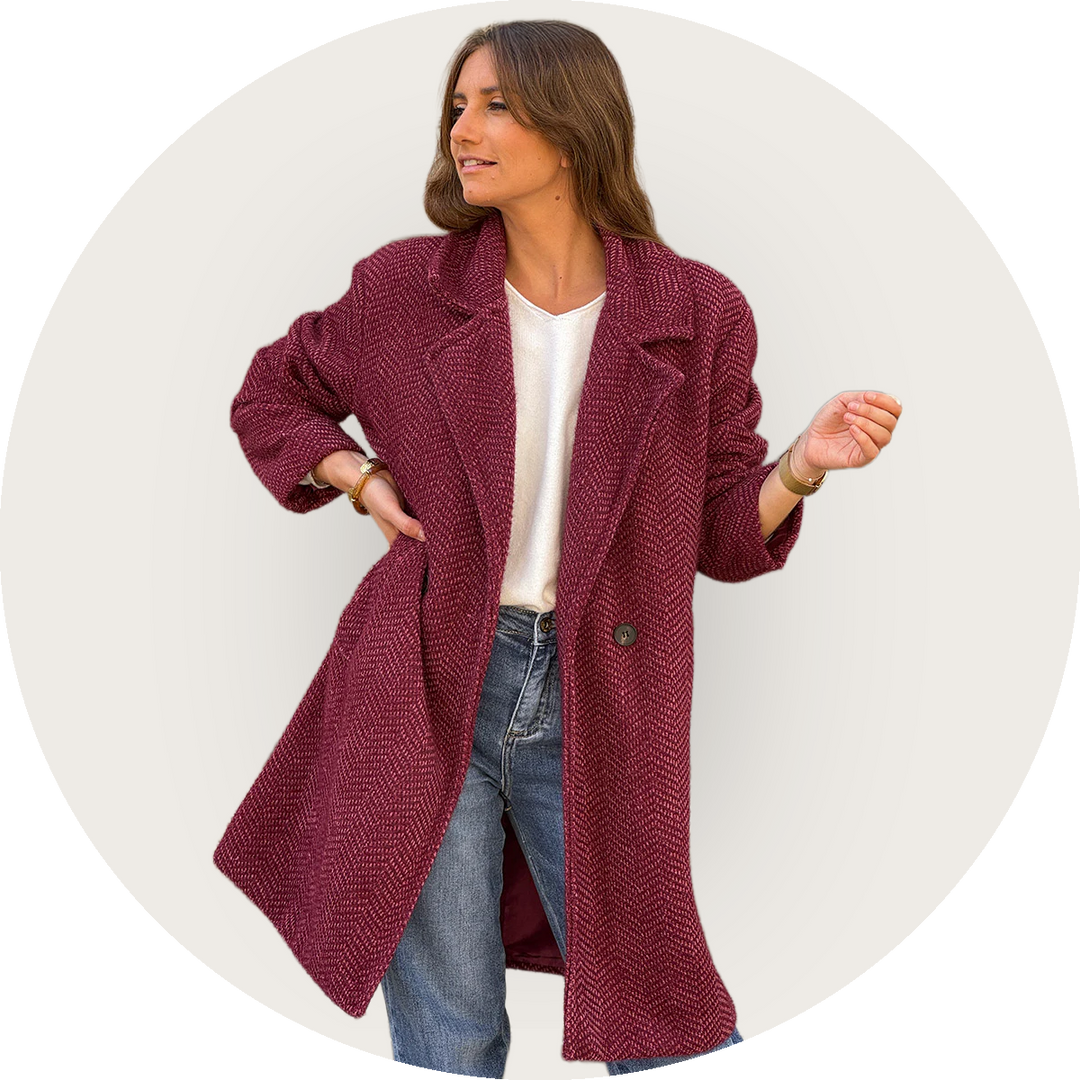 Tunique aubergine à boutons manches ajourées motifs en crochetTunique aubergine à boutons manches ajourées motifs en crochet