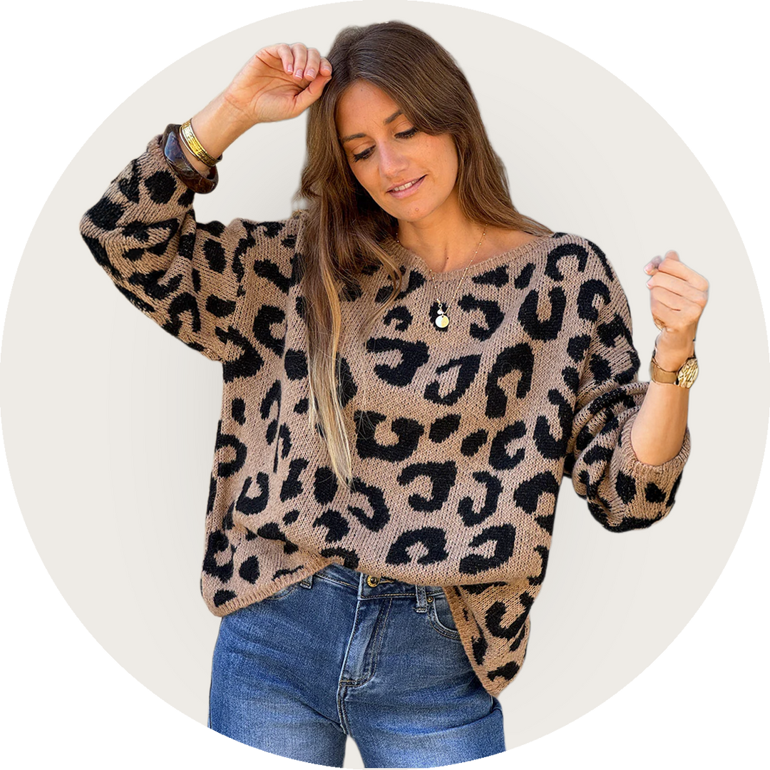 Blouse camel imprimé léopard en gaze de coton col boutonsBlouse camel imprimé léopard en gaze de coton col boutons