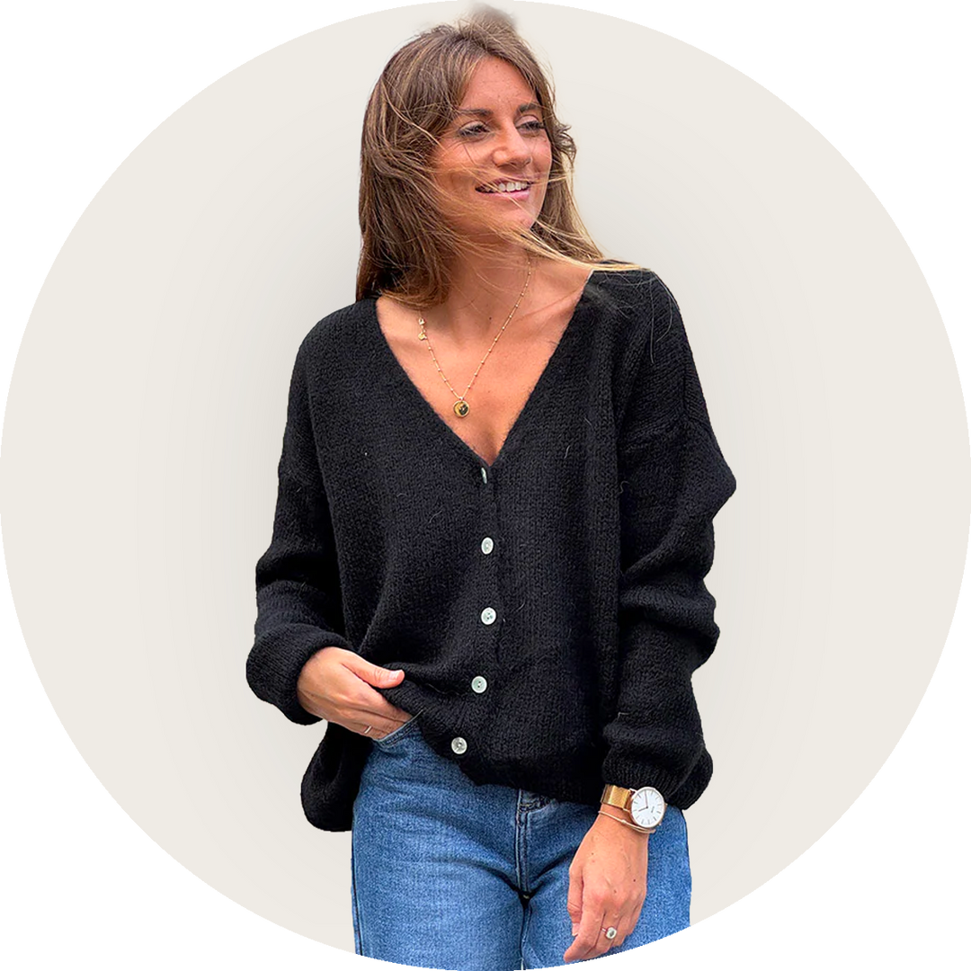 Tunique marron à boutons manches ajourées motifs en crochetTunique marron à boutons manches ajourées motifs en crochet