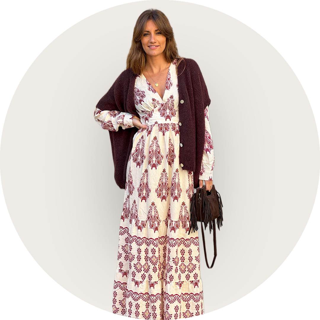 Tunique terracotta à boutons manches ajourées motifs en crochetTunique terracotta à boutons manches ajourées motifs en crochet