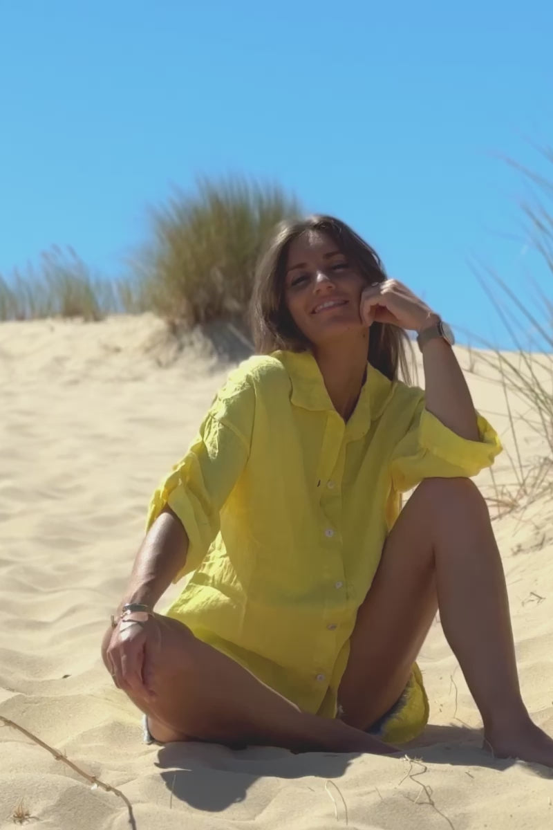 - Notre magnifique chemise en lin est d'un joli jaune.