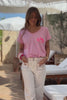Tshirt rose stretch et large vague et Cote d'Azur détail frangesTshirt rose stretch et large vague et Cote d'Azur détail franges
